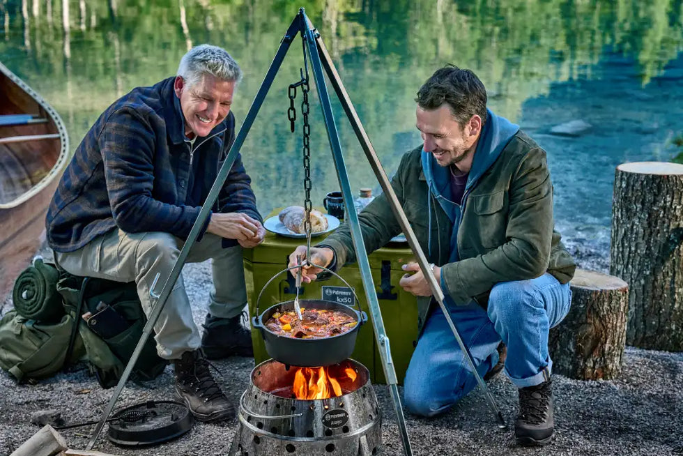 Gusseisen, offenes Feuer, echte Zutaten. Unsere Kochausrüstung ist gemacht für draußen – robust und ein Leben lang dabei.