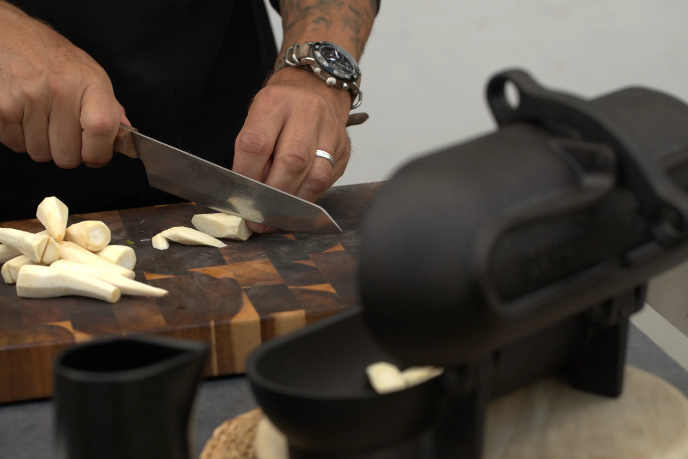 - Kartoffelbräter: Perfekt zum Karamellisieren der Petersilienwurzeln in der Glut.