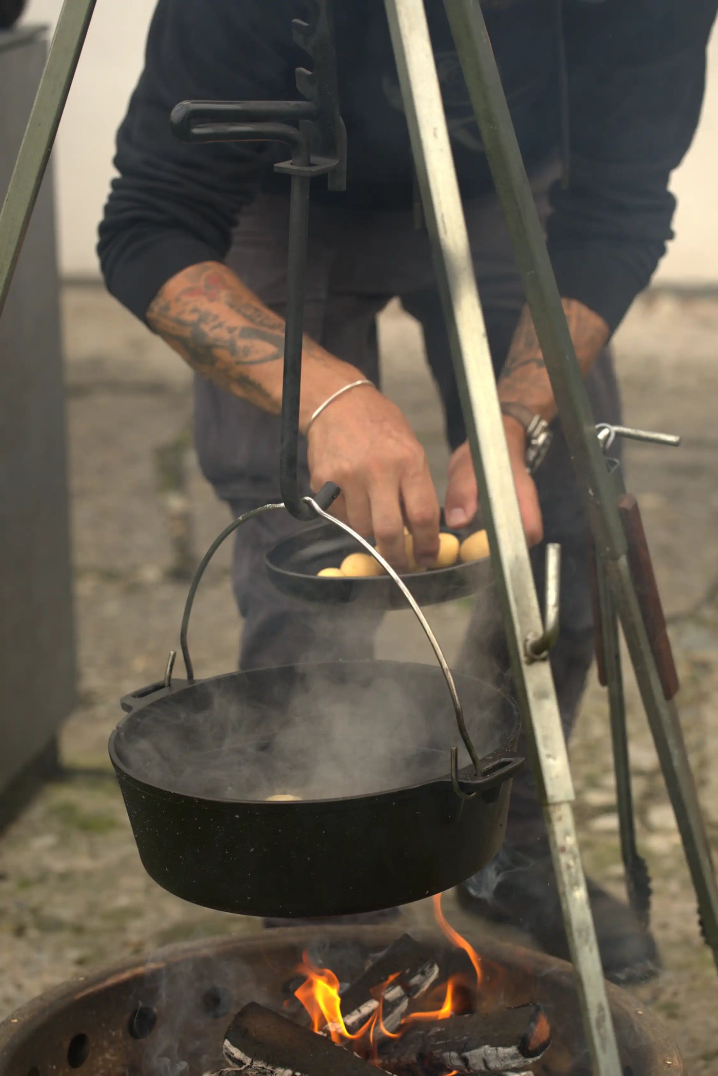 - Dutch Oven am Dreibein: Für das Kochen der Spekulatiusknödel direkt über der Feuerschale.