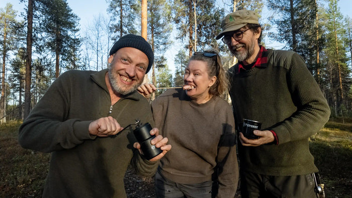 Der zweite Halt führt weit nach Norden. Nach Sonne und Mittelmeer wartet die Wildnis Finnlands. Mit Boot und Kamera geht es hinaus in die Natur. Feuer machen, Kaffee kochen, Zutaten vorbereiten – und später saftige Rentier-Burger über offenem Feuer.