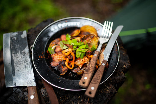 Das Petromax Camping Besteck Set aus Edelstahl ist der ideale Begleiter für Mahlzeiten unter freiem Himmel. Ob beim Camping, im Van oder am Lagerfeuer – das 5-teilige Set mit Messer, Gabel, Esslöffel, Teelöffel und Snack-Gabel liegt dank durchgehendem Edelstahlkern angenehm in der Hand und überzeugt durch seine robuste Verarbeitung.