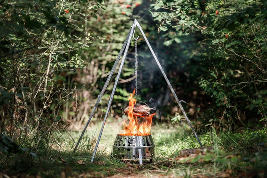 Robust gefertigt und einfach aufzubauen, ist das Petromax Dreibein ein zuverlässiger Begleiter für alle, die das Kochen und Grillen im Freien lieben.