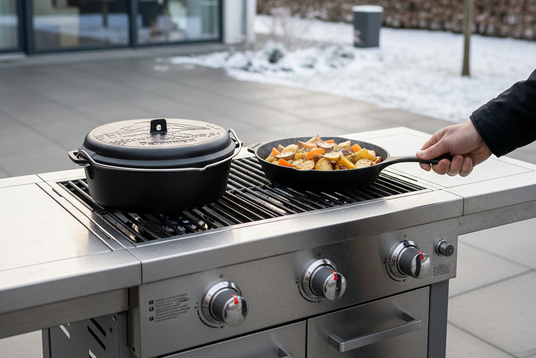 Der Feuertopf aus der Essential Line vereint traditionelles Dutch-Oven-Feeling mit cleverer Funktionalität für die moderne Abenteuerküche. Das robuste Gusseisen speichert Wärme zuverlässig und verteilt sie gleichmäßig – ideal für aromatische Eintöpfe, knuspriges Brot oder saftige Schmorgerichte vom Herd, Grill oder offenen Feuer.