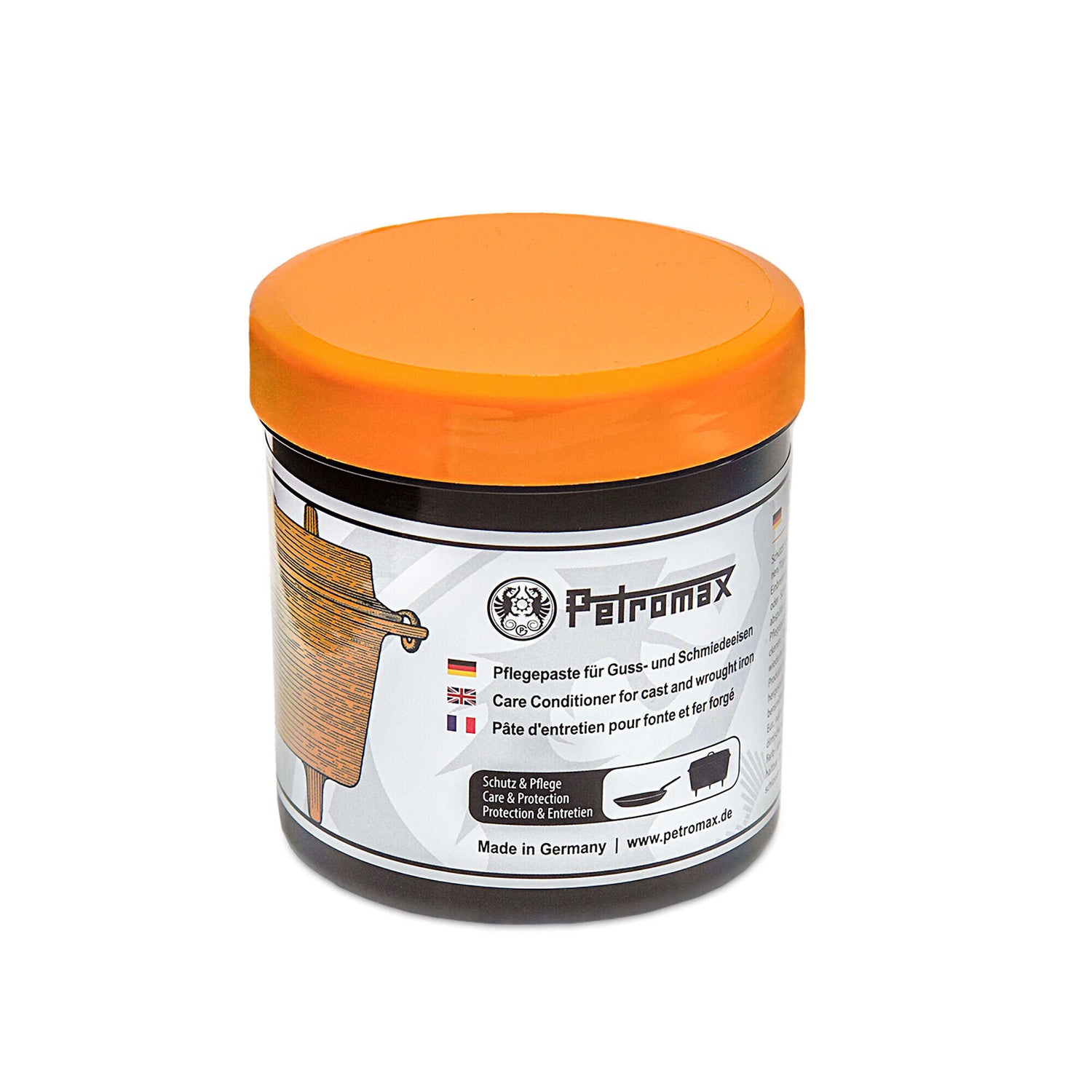 Die Pflegepaste für Guss- und Schmiedeeisen ist die aus natürlichen Inhaltsstoffen hergestellte Paste, die die vorbehandelte Oberfläche (Seasoned finish) erhält, sodass du lange Freude mit deinem neuen Feuertopf haben wirst. Nach dem Abkühlen deines Feuertopfs einfach aufgetragen, schützt sie die wertvolle Patina und optimiert sogar die Koch- und Brateigenschaften des Gusstopfes. Sie ist lebensmittelecht, glutenfrei und vegan und du kannst sie auch verwenden, wenn du deinen Feuertopf erneut einbrennen möchtest.