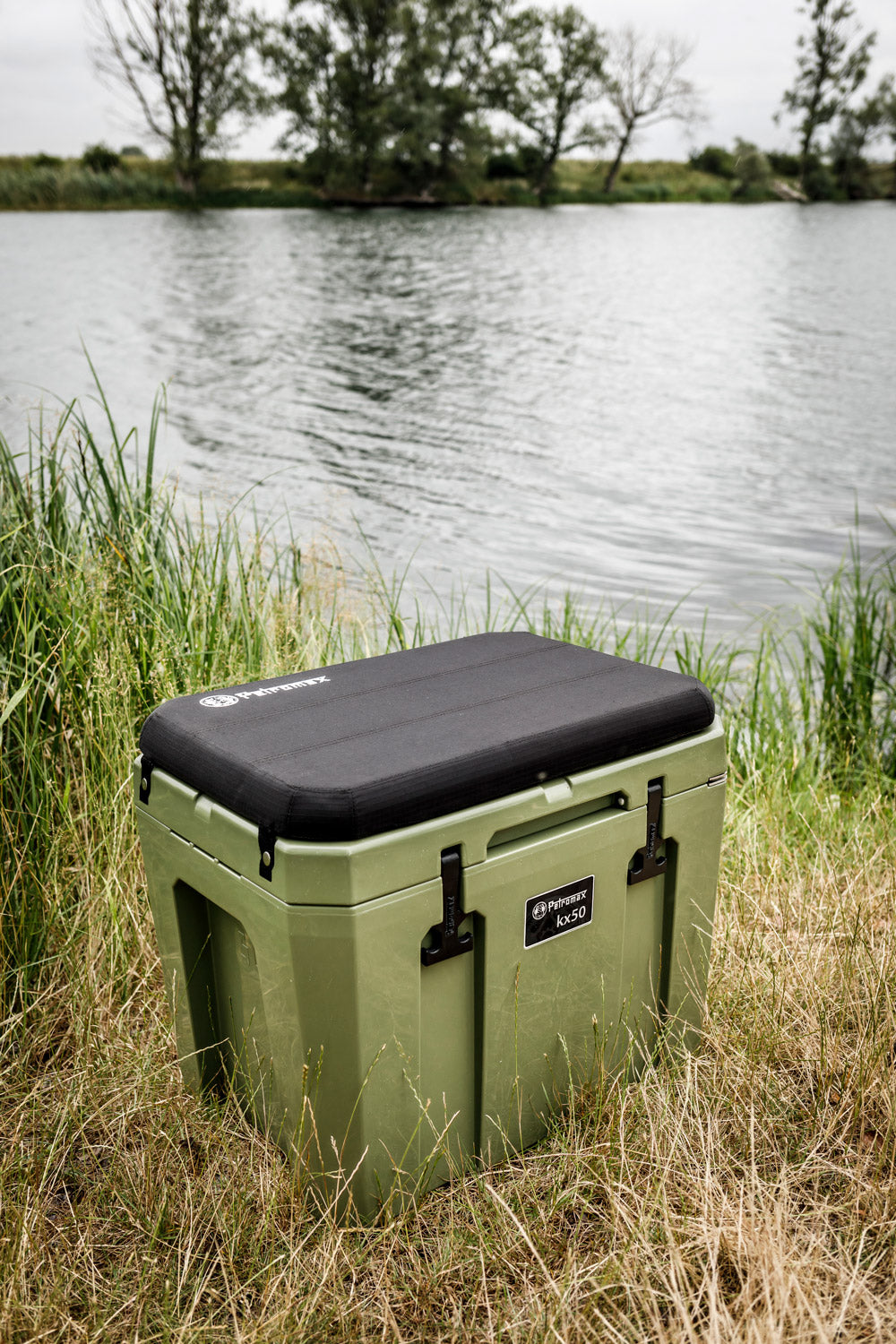 Für erholsame Draußen-Pausen – Das Petromax Sitzkissen für die KühlboxMit dem Sitzkissen für die kompakte Petromax Kühlbox machst du aus deinem Ultra-Passivkühlsystem gleichzeitig einen Rastplatz zum Mitnehmen. Der Kissenkern aus dauerelastischem Schaumstoff bildet dabei die entscheidende Grundlage für Erholung in der Natur. Er sorgt für eine ideale Druckverteilung bei Belastung und dadurch für ein angenehmes Sitzgefühl. Das Sitzkissen ist mit robustem Ripstop-Gewebe (Stärke 600D) überzogen. So hält es auch häufiger Beanspruchung stand und bleibt besonders unempfindlich gegenüber Verschmutzungen. Einsatzspuren wie Matsch können leicht abgebürstet, stark eingetrocknete Stellen mit einem feuchten Tuch entfernt werden.Das spezielle Mesh-Gewebe auf der Unterseite des Sitzkissens bildet eine starke Anti-Rutschbeschichtung. Es gibt dem Kissen Halt und schafft dir einen festen Sitzplatz am Lager. Gleichzeitig fördert es die Luftzirkulation und damit auch das ideale Trocknen nach einem Regenschauer. Drachenstark und geschmacklich rund wird das Sitzkissen durch den Logostick auf der Oberseite.Bequem auf Knopfdruck – Druckknopfsystem für dein Kühlbox SitzkissenÜber das praktische 4-Punkt-Druckknopfsystem wird dir ein schnelles Befestigen und Ablösen des Sitzkissens ermöglicht. Die passenden Gegenstücke zur Montage am Kühlboxdeckel sind in der Lieferung enthalten und du musst sie lediglich vor der ersten Benutzung montieren.So gerüstet geht es auf in heiß-kalte Expeditionen und Abenteuerurlaube mit den Jungs! Mit funktionalem Petromax Zubehör bleibst du flexibel: Das Sitzkissen mit Druckknopfsystem lässt sich mit der Haft-Auflage für die Petromax Kühlbox