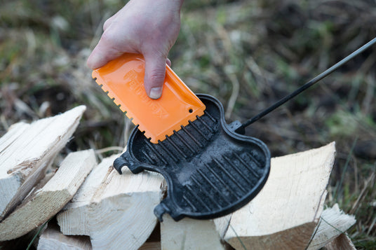 Der Petromax Schaber erleichtert die Reinigung von Feuertöpfen, Pfannen und Kastenformen aus Guss- und Schmiedeeisen. Mit seiner passgenauen Form erreicht er selbst schwer zugängliche Stellen und entfernt hartnäckige Rückstände, ohne die schützende Patina zu beschädigen.