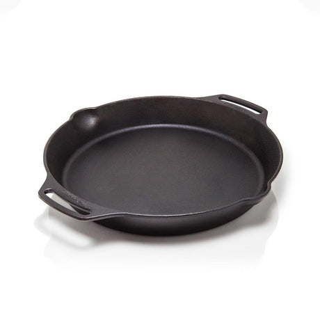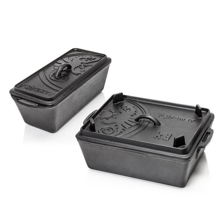 Das Set aus zwei Gusseisenpfannen (25 & 30 cm) bietet perfekte Wärmeverteilung, natürlichen Antihaft-Effekt und funktioniert auf Herd, Ofen, Grill & Lagerfeuer.