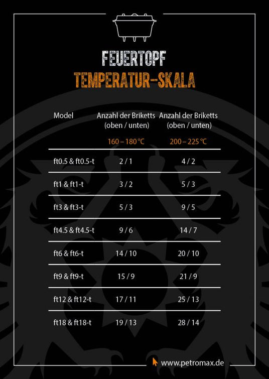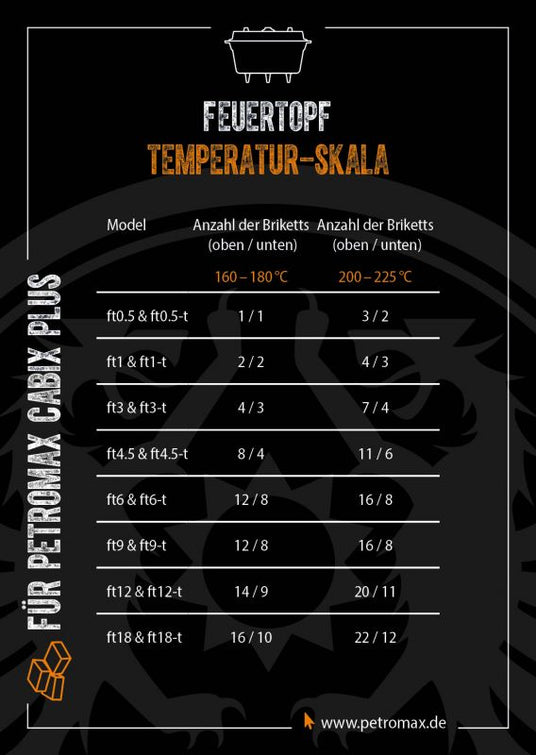 Die richtige Anzahl der Briketts für die verschiedenen Feuertopfgrößen